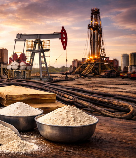 | Drilling Muds | Provides viscosity and lubricity, controlling well pressure. |